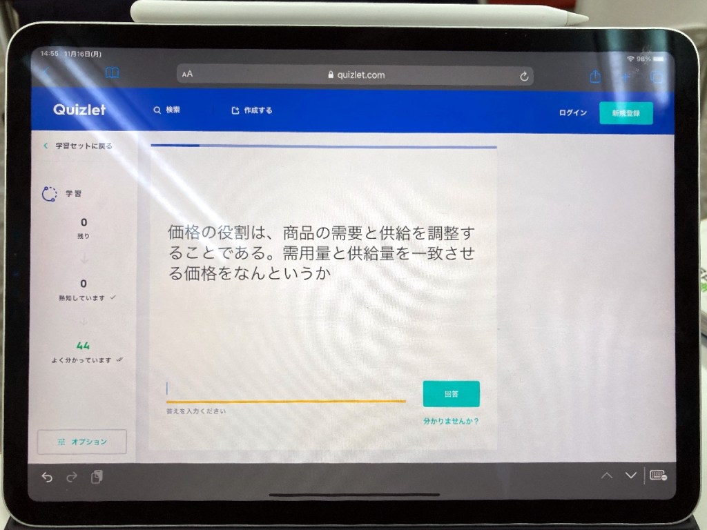 驚いたのは、それを単語カードアプリのQuizletに打ち込んで、iPadで反復練習が出来るよう工夫がされていたからだ。
